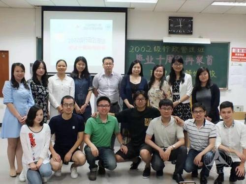 (通讯员 张钰浠)6月4日,经管学部经济与管理学院公共管理系2002级行政管理专业近十多位校友返校举行了“毕业十周年再聚首”活动。经管学部党委副书记毛建国、公共管理系主任高慧军、班主任何一冰、公共管理系教师高萍等出席了此次活动。