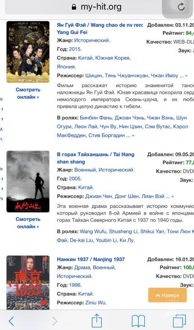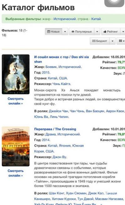 (向我展示网站my-hit网站中的“中文电影”一栏。但大多数国产电影在俄语网站上没有字幕,只有简单的配音:影片的原声没有被消除,只有一名工作人员完成了整部影片的配音。比如电影《美人鱼》、《道士下山》。同时影片的点击量相对较低,留言中对电影的评价也是褒贬不一。)