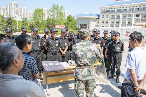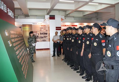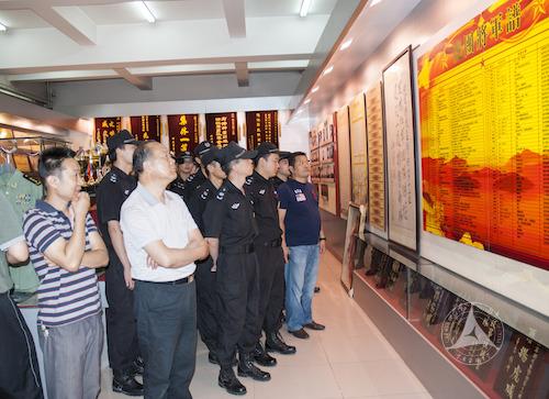 在参观老虎团团史馆时,讲解员从团队的初建讲到抗日战争、解放战争,从抗美援朝讲到进驻北京,卫戍首都的现代化建设,团队辉煌的历史和艰苦卓绝的战斗历程深深感染了保卫干部和保安队员。在参观连队内务建设时,从床上的“豆腐块”,到干净整洁、放置有序的器材室,大家看到了差距,普遍感到日常工作标准和自身要求还有较大的提升空间;从宽阔的电脑室、学习室及先进的文化设施,统一便携的装备和设计科学的器材架,大家看到了我军改革和现代化建设的飞速发展,对祖国和军队的信心倍增。为使此项学习教育紧密结合学校保卫工作实际,老虎团专门进行了队列表演和反恐演练,战士们整齐划一的动作和雷厉风行的作风,深刻影响每一位同志。最后,在部队大院门前,部队教官为大家讲解警卫执勤器材的使用和操作方法,执勤分队模拟演练突发情况处置,对学校应急处突小分队的训练和学校反恐应急准备具有很强的指导意义,保卫干部和应急处突小分队深受触动和启发。