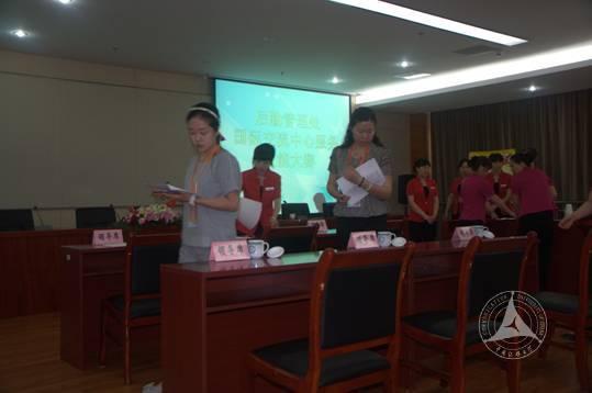为提高后勤员工整体素质,不段增强服务质量,6月20日,后勤管理处2016年国际交流中心“会议服务”技能大赛在2号楼A104会议室举行。后勤管理处副处长严文明出席会议并致辞,后勤管理处结算中心主任林浩静担任此次比赛的仲裁。后勤管理处国际交流中心主任、会议服务主管、教工代表及学生代表担任了此次比赛的裁判。