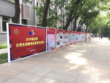 (通讯员 栾天天 摄影 吴念)为进一步培养和激励大学生创新创业意识,培育校园创新创业文化,近日,就业创业指导中心在校内举办“2016创业季·大学生创新创业教育活动展”。近百块展板已顺利完成在综合楼的展览,现移至一号楼北侧继续展览,展期一个月。