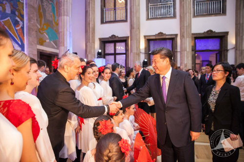 (通讯员 孙玉红)当地时间6月17日,国家主席习近平抵达塞尔维亚,对塞尔维亚共和国进行为期三天的国事访问,塞尔维亚以最高礼遇和最大热情迎接习近平主席的历史性访问。18日晚,塞尔维亚总统尼科利奇在总统府为习近平主席访塞举办盛大欢迎晚宴。我校合作建设孔子学院——贝尔格莱德孔子学院学员应总统府邀请,与塞著名艺术团体一同奉上艺术表演为晚宴助兴,习近平主席和夫人彭丽媛、塞尔维亚总统和夫人以及中塞贵宾80人一同观赏。