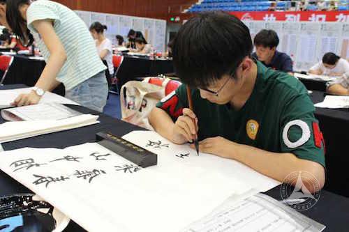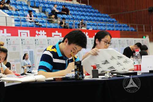 本届大学生书法大赛共有29所高校报送343件优秀作品参加初赛。经大赛评审专家委员会的严格评审、层层遴选,82名选手共同进入决赛。区别于往届,本届大学生书法大赛决赛阶段分为定题书写、选题书写和作品述评三个环节。我校2014级通信工程专业张一民同学和2014级西班牙语专业熊家志同学在众多选手中脱颖而出,顺利进入决赛,并分获决赛二、三等奖。