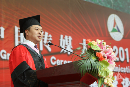 长江学者特聘教授、博士生导师胡智锋教授作为教师代表发言。他在向各位毕业生表示热烈祝贺的同时,也为同学们的成长与改变高声喝彩,在同学们即将离开母校奔赴前程之际,他以三句话来表达对同学们的期待:一是永远拥有赤子般的情怀;二是永远拥有君子般的胸怀;三是永远拥有学子般的心怀。