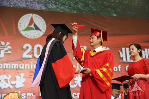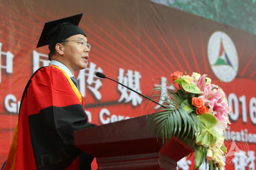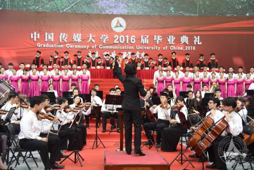 (新闻中心记者 陈艺文 摄影:周维一 王丹瑛 张皙 任仲轩)6月29日上午,中国传媒大学2016届毕业典礼暨学位授予仪式在新建的学生活动中心隆重举行,这是十多年来第一次本科生和研究生欢聚在一起的毕业典礼。校党委书记、学位评定委员会主席陈文申,校党委副书记刘守训、赵晖,副校长袁军、胡正荣、廖祥忠、蔡翔,校友代表、中央电视台主持人沙晨等出席典礼。
