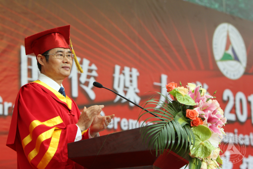 陈文申书记表示,今天的毕业典礼之后,同学们将各奔东西,从校园走向社会,开始书写一个大写的人生,在这惜别之时,他有三句话送给各位同学:作为传媒学子,应该坚守“理想信念、责任担当”;面对社会,应该培育“隔离的智慧、超越的心灵”;面对人生,请相信“但凡经过,总有收获”。