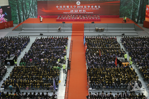 6月29日上午,在大学生活动中心(风雨操场)内,红毯绵延,灯光闪烁,笑语激荡,洋溢着喜庆欢乐气氛,中国传媒大学2016届毕业典礼在这里隆重举行。这是10多年来我校第一次本科生和研究生欢聚在一起的毕业典礼,也是第一次在新落成的大学生活动中心举办的毕业典礼,同时还首次加入了文艺表演的元素,首次携手腾讯网通过全媒体平台直播……这一系列的首次,为今年的毕业典礼增添了别样的光彩,赋予了特别的意义,也引发了广大师生、校友及社会各界的广泛关注与好评。