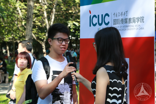 国际传媒教育学院组织了“校园大使”活动,“学生大使”们引领新生和家长在修缮一新的校园里进行参观,熟悉环境。为了让新生们提前熟悉几乎全英文的教学方式,ICUC特别在现场对新生进行了中英文采访,并将其存入同学们就此开启的 GMC(传媒全球公民)档案。