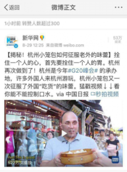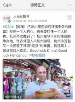 这条视频介绍了杭州特色小吃——小笼包的历史、制作过程,反映了外国友人对小笼包的喜爱。视频通过中国日报,在爱奇艺、优酷、腾讯、新浪微博、秒拍、中国日报微信公众号、Facebook等平台的“微观G20峰会”话题下发布,短时间内获得了很高的关注,各平台的点击量均迅速攀升达到800万次,并成为当日的微博热门话题。共青团中央、人民日报、新华网、杭州发布、济南日报等微博帐号也进行了转发。同一时期,介绍杭州智能城市建设的短视频《二维码上的杭州》,和介绍杭州公共自行车服务系统的短视频《杭州公共自行车》也陆续在各大平台上线,点击量均超过百万。“微观G20峰会”是中国日报在网络新媒体平台上推出的G20预热报道话题。