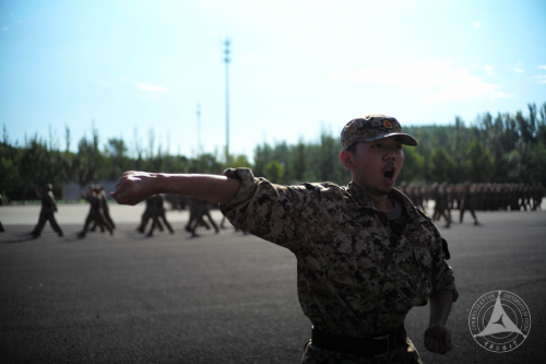 在各连特色科目中,由男生连混编的军体拳方队格外引人注目。经过几个学时的练习,小伙子们的一招一式已初见士气。