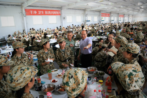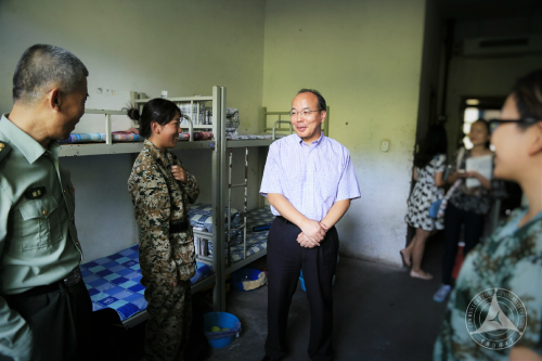 会后,各学部(直属学院)领导和老师分别到自己学生的集合地,与军训同学进行互动交流。中午,刘副书记在学生工作部(处)长张根兴、齐金贵及部分学部(直属学院)领导陪同下,深入学生食堂和宿舍,察看了学生们的就餐和内务情况,并与在场的部分同学进行了简短交流,给同学们以鼓励。