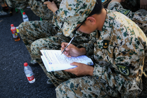 (通讯员 陈逍 摄影 徐顺 蓝天)军训第六天上午,军训团组织进行了军事理论闭卷考试,同学们在训练场列队,背向太阳,坐在板凳上答题。考试严格按照学校的监考规则进行,考前宣读了考场规则。整个考试过程中,考场秩序井然。