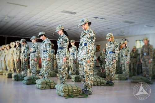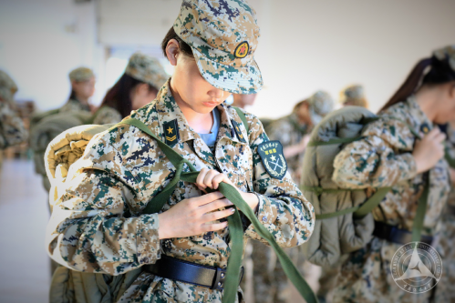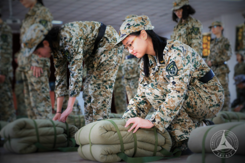 所有女兵能参与的项目,都有八连女兵的身影。内务方队的女生们要求在两分钟内打出一个完美的背包。“一直要蹲在那里爬来爬去,”内务方队的女生说,“站起来的时候感觉身体被掏空……”不过看着一个个背包迅速打好,内心成就感满满。