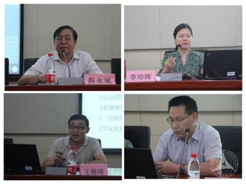 王栋晗副学部长从科研成果基本情况、举办大型学术活动、开展学科建设专项调研、科研管理与服务工作四个方面通报了经管学部2016年春季学期科研情况。学部成立以来,科研成果数量快速增长,质量稳步提高,目前已有4个国家级、3个省部级、5个司局级纵向课题,9个横向课题立项;举办了“文化经济创新论坛”大型学术活动、承办了“2016国家文化产业创新实验区高端峰会”;组织教师分赴全国各地开展学科建设专项调研;在科研管理与服务工作方面,明晰了学科建设方向,强化特色,搭建平台,整合资源,全方位为学科建设服务。对于科研管理与服务工作方面,王栋晗指出,要办实事,建立有效的科研成果发表平台和项目申报通道,提高科研成果发表率和项目立项成功率;让科研工作不孤单通过课题研讨、学术活动等形式,凝练研究方向,形成稳定的科研小组;做好学术搭桥人,建立内外联动、广泛多元的学术网络。
