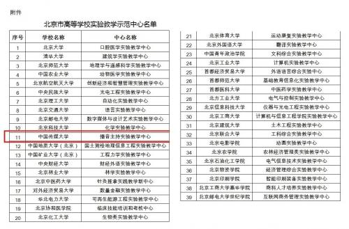 (通讯员 涂中文)近日,中国传媒大学播音主持艺术学院播音主持实验教学中心获得了北京市教委授予的“北京市高等学校实验教学示范中心”的称号。