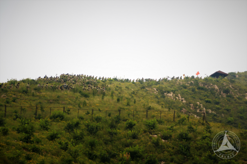 此次拉练和上半年一样,路线确定为沿顺义五彩浅山栈道向唐指山方向迂回行进,最终经过乡村公路返回营区,共计约9公里。此次仍由军训团国旗班担任尖刀班,代理团长刘艳杰打头阵,参谋长马千里居中,政委齐金贵收尾。