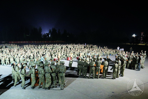 (通讯员 陈逍 摄影 蓝天)军训第十二天,恰逢中秋佳节,军训团根据训练计划,特意将歌咏比赛安排在当天晚上进行。