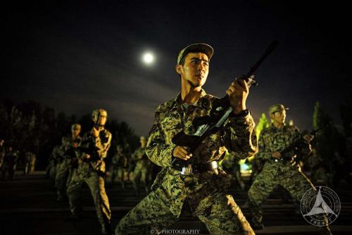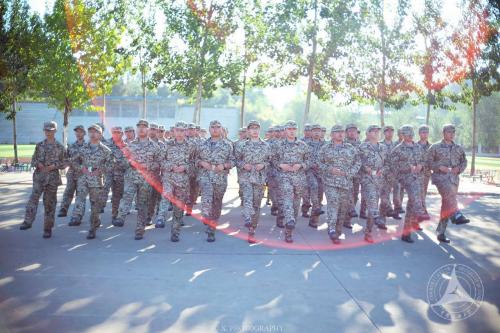 方阵队列一直是三连的标杆。在连长的指导教学下,踢腿、摆臂、一步两动,他们刚毅果敢的面容和响亮整齐的步伐,完美的诠释了三连的口号:钢筋铁骨,威武三连!