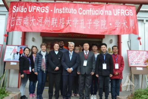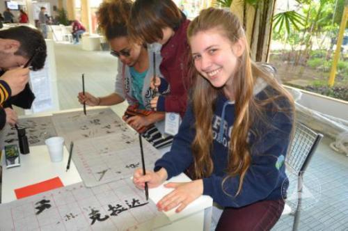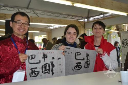 (通讯员 张攀飞 摄影 张磊)当地时间9月12日至16日,中国传媒大学巴西南大河州孔子学院应邀参加了巴西南大河州联邦大学一年一度的学术周文化活动。活动中,我校孔子学院精心准备了丰富多彩的中国文化系列活动,包括“中国红”图片展、中国文化体验、文艺表演、汉语教材展示四大部分。南大河州联邦大学校长Carlos、副校长Jane到孔子学院视察文化活动工作。