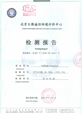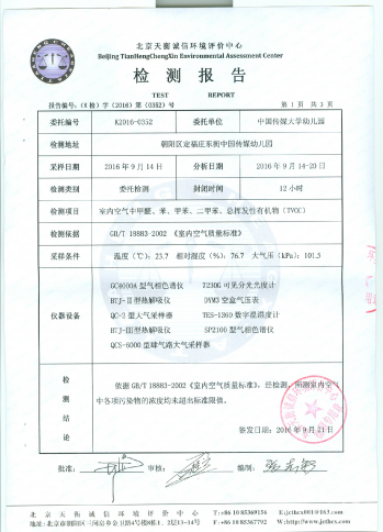 (通讯员 陶慧敏)孩子们的健康是家长和幼儿园首要关注的,修缮后的幼儿园,空气质量是家长最为关心的。暑期装修工程结束之际,幼儿园委托了专业的环境评价机构对园内班级空气质量进行了甲醛、苯、甲苯、二甲苯、TVOC指标的空气取样和检测,经过检测,所有样本均符合标准,依据检测结果,专业机构为幼儿园出具了权威的《检测报告》。