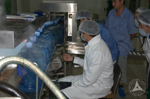 考察小组对供应厂家的纯净水处理设备、包装桶的清洗灌装设备、化验室的检验设施、生产工艺流程及人员卫生状况等设施情况进行了了解,详细询问了桶装水的包装材质、水处理设施中滤膜的更换与保养、质量关键控制点的设置与监测手段等情况,参观了采用超过滤全自动制水设备,全封闭无菌灌装流水线和全自动灌装清洗杀菌生产线,确认每一桶水都是安全可靠的。