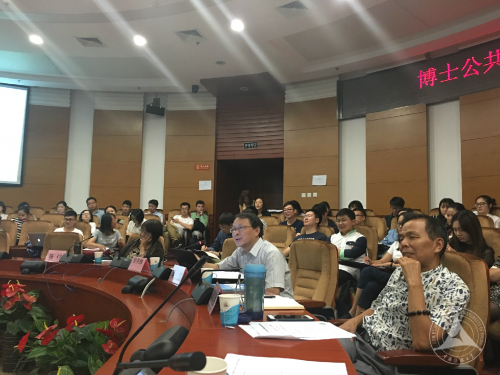 研究生院副院长舒笑梅教授致辞,她首先祝贺各位同学经过竞争激烈的选拔考试后顺利成为一名中传人,其后,她用翔实的数字和出自学生之口的评语高度评价了《马克思主义与当代中国》这门课,指出这门课程作为同学们入校后的第一门课为博士学习阶段奠定了良好基础,具有积极的意义。最后对同学在以后课程的学习提出了要求,希望他们在遵守各项规章制度的前提下争取优异的成绩。之后,课程特邀主持人、我校政治传播研究所所长荆学民教授介绍了课程性质、设计及相关安排,鼓励同学们通过这门课程认识中国社会,提有价值的问题,沿着这些问题继续深入地思考和探索,逐步形成博士生特有的思维方式。最后,助教吴俊老师对课程考核作了详细介绍。