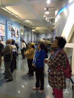 在中国航空博物馆,老党员们兴致勃勃地参观了洞库展厅、珍宝馆和露天展厅,怀着崇敬的心情瞻仰了伟人毛泽东的座机;抗美援朝时首次击伤、击落敌机的英雄战机;著名豫剧表演艺术家常香玉捐赠给志愿军空军的“香玉剧社号”战机......这些珍贵的文物引起了老党员们对中国人民艰苦卓绝的战争年代的回望,激起了老党员们平日里深藏的爱国爱党热忱。他们在空军英模人物和牺牲飞行员的纪念墙前深切缅怀,对如今的盛世华章心存感恩。在展厅里,老党员们了解了人民空军从无到有的历程,装备信息化的建设功绩,航空武器装备的发展,为强国梦航天梦的实现感到欢欣鼓舞,并在习近平总书记的题词前合影留念。“十一”国庆节临近,离退休人员党委组织的这次主题党日活动,通过对我国航空事业发展历史的了解,深入开展“两学一做”的教育实践,让老党员们为国家的繁荣昌盛感到自豪和欣喜。