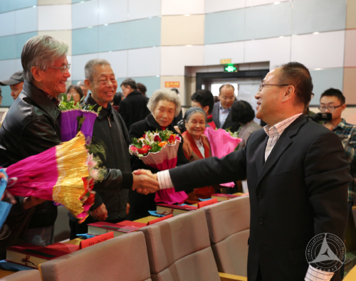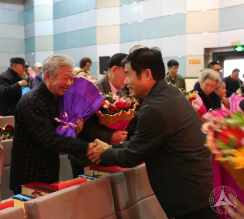 大会为我校今年年满70岁、80岁、90岁的老同志集体祝寿,党委副书记刘守训宣读了66位寿星的名单,并向他们致以节日的祝福。校领导们为寿星们敬送了祝福的贺卡、鲜花和寿礼,并与寿星们合影留念。