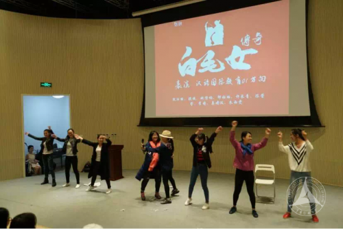 除了那些动听的歌曲,汉语国际教育一班的王萌、王涛同学更是使出浑身解数,自编自演了相声《无题》,包袝不断,引发阵阵笑声。汉语国际教育一班的同学们还倾情上演了话剧《白毛女传奇》,观众们纷纷折服于演员们或搞笑或深情的表演中,台上台下欢声笑语一片。