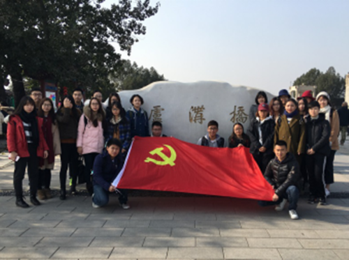 (通讯员 王天浩)11月12日,新闻传播学部新闻学本科生党支部组织开展“两学一做”主题党日活动,26名党员和入党积极分子前往卢沟桥和中国人民抗日战争纪念馆,参观革命遗址,缅怀革命先烈,以加深对党章与习总书记系列讲话精神的理解,提高学习效果。