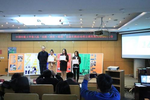 (通讯员 柴娟)11月30日,我校第八届“实践•成长•收获”公益实践活动项目颁奖暨成果展示大会在我校44号楼一层报告厅举行。大会颁发了优秀个人奖、优秀指导老师奖以及公益实践项目一、二、三等奖及优秀奖等奖项。经过前期评审,最终有22个项目脱颖而出,获得立项并得到资金支持。
