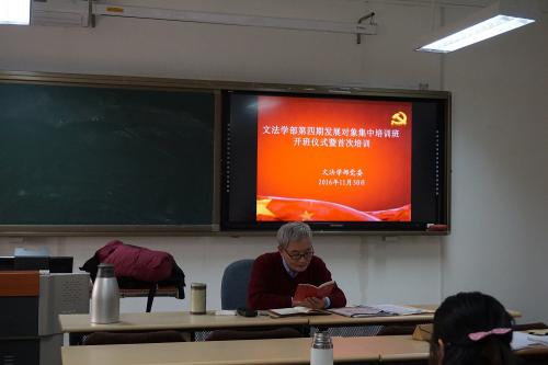 (通讯员 许蕾)11月30日下午,文法学部分党校举办发展对象集中培训班开班仪式暨首次培训,特邀辅导员孙中一老师主讲,全体发展对象参加培训。开班仪式由学生党务指导教师周媛媛主持。