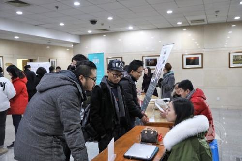 宣讲之外,各企业在中国传媒大学综合楼一楼大厅中开设展台以展示自己的招聘需求或合作意向,为愿意深入了解的同学做咨询。