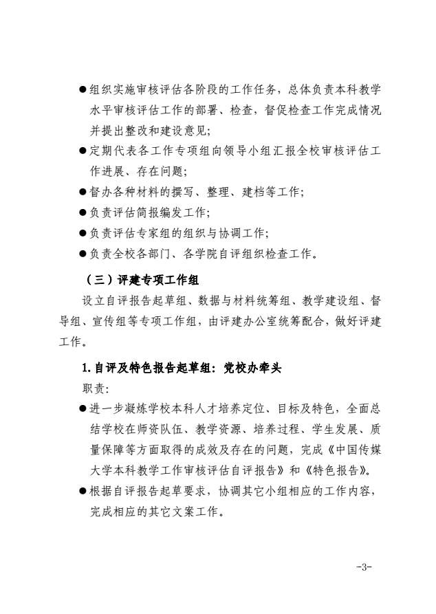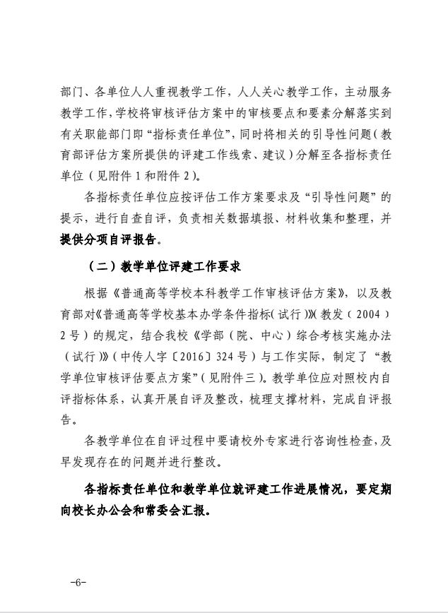 关于印发中国传媒大学本科教学工作审核评估评建工作方案的通知