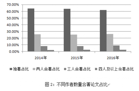 表1:2014—2016年复印报刊资料转载论文作者合著概况