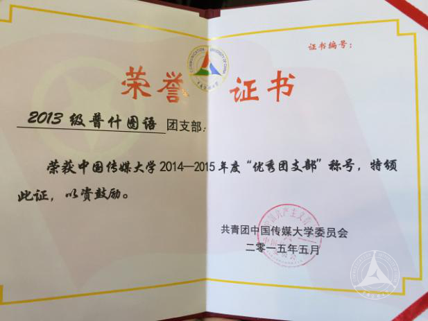 在组织建设上,2013级普什图语专业的学生党员占到了全班人数一半,他们连续两次荣获校“优秀班集体”“优秀团支部”称号。