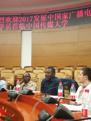 (通讯员 陈柏岑)7月3日,“2017发展中国家广播电视发展与管理部长研讨班”学员莅临中国传媒大学参观交流。来自十余个发展中国家的40余名广播电视领域的部长、国家新闻出版广电总局领导、媒体从业人员与我校专家围绕媒体素养教育、发展中国家媒体产业发展、信息时代的媒体融合等多个议题展开了系统研讨。此次研讨活动由中国传媒大学继续教育学部、新闻传播学部非洲传媒研究中心联合承办。
