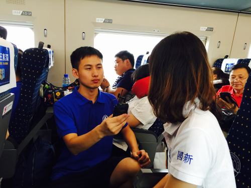 对于刚刚开始的国情实践活动,同学们充满了热情与期待,在实践团前往兰考的旅程中,第一小组的同学们已经在G801次火车上开始了现场报道的新闻实践活动,通过现场出镜的形式,对同学们以及带队老师进行学习焦裕禄精神、讲好中国故事的相关采访报道。