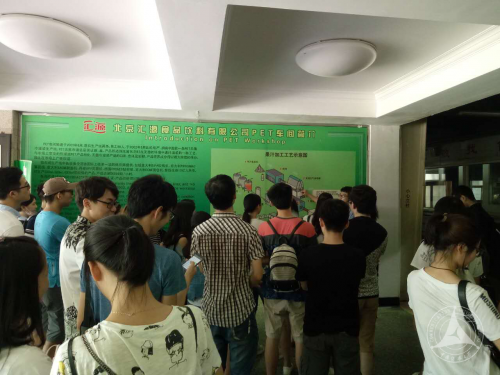 随后,师生们来到汇源集团的生产车间进行参观,主持人讲解了无菌冷罐装生产工艺、果汁的正确倒法、果汁加工工艺、市面上水产品的分类等知识,并带领师生参观了果汁生产线和饮用水的生产线。