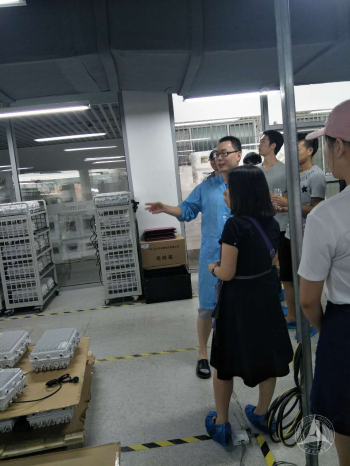 在工作人员的陪同下, 同学们参观了企业的无菌生产车间,对于电子产品的流水线作业有了直观的认识,了解了机顶盒设备、芯片卡设备等硬件的生产流程与行业标准。