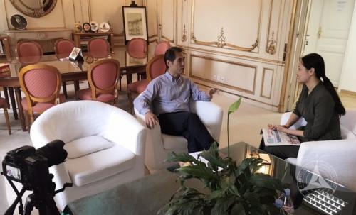 (通讯员 刘诗锦、孙伟健 摄影 宋晨)7月11日下午,我校新闻传播学部国际新闻传播海外教学实践团来到巴黎中国文化中心进行参访。国际新闻传播硕士班党支部的党员学生向巴黎中国文化中心捐赠了数十册中法双语图书,聘请中心主任严振全老师担任国际新闻传播海外教学实践基地业界导师,并结合文化传播,对严振全主任进行了专访。