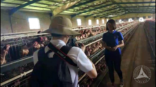 翁旭东小组采访了张庄村的养鸡大户闫春光,在养鸡棚内用镜头记录闫春光的致富路。对小组成员来说,站在鸡棚中出镜报道是第一次,也是一个不小的挑战。