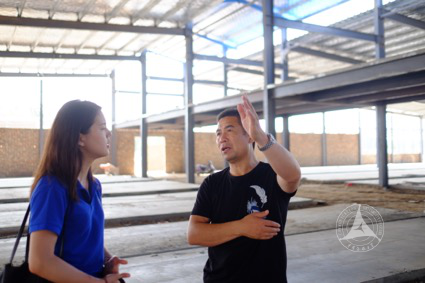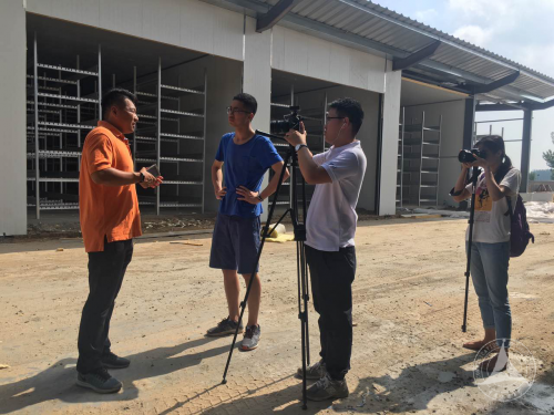 欧立坤采访小组成员们来到位于张庄村的奥吉特食用菌生产基地进行拍摄采访。奥吉特公司成立于2007年,从事“褐蘑菇”工厂化种植和货物、技术进出口业务,2016年到张庄村投资建设新厂。目前新厂房正在烈日扬尘下紧锣密鼓地建设当中,预计7月底完工投产。