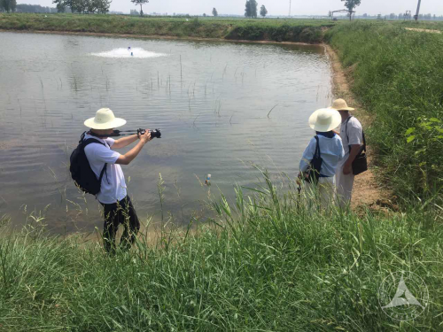 朱頔小组成员们在似火骄阳下,搭上老乡龙大哥的车,前往拍摄张四培大爷的美国对虾养殖厂,在水塘边进行了采访,了解张大爷的养殖虾秘诀。