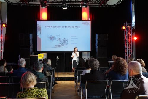 我校马克思主义学院副教授、荷兰格罗宁根孔子学院中方院长刘婧一在“中国讲坛”会场带来了名为“山水在中国文化中的诗意表达和哲学蕴味”的演讲。她以古筝曲《高山流水》为导入,让听众在琴声中感受中国山水的意蕴和内涵,并从甲骨文“山”“水”、伯牙子期的典故以及中国古诗这三重角度解读了中国山水在中国人心中的独特意义,听众在图片、音乐和语言多重感官中感受到了中国山水所表达的诗意和哲学。