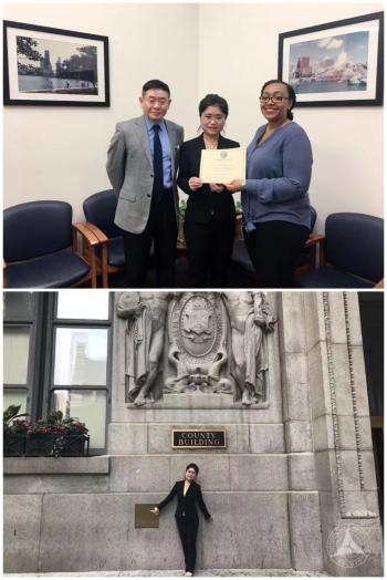 2015级传媒艺术学专业研究生张倩在学院的推荐下于今年6月去往芝加哥政府秘书处以City Clerk的身份进行实习,实习期间她在纽约时装周担任过新媒体报道记者,在华人网络春晚中进行过钢琴演出,并在各项活动中结交了众多外国朋友。当她在工作中遇到难题,同事们总能有问必答;当她在异国他乡迷路时,路过的白人男生将她一路送到目的地才放心离开;当她即将启程回国,外国朋友纷纷送给她独具心意的小礼物。这一切的一切,都淡化了她在陌生国度的焦虑不安,让她感受到爱与关怀。