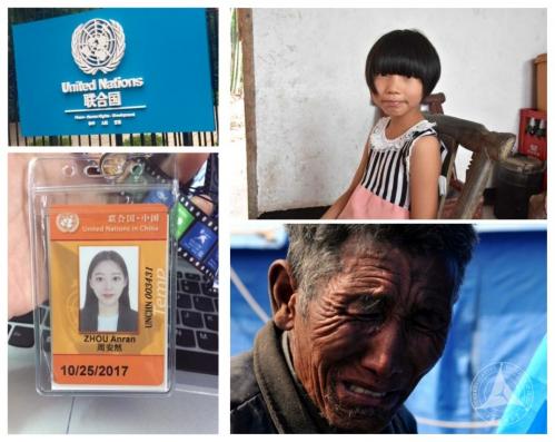 2015级传播学专业的周安然实习于联合国世界粮食计划署。她的主要工作内容是从传播的角度为项目的传播提供方案,以帮助中国的贫困家庭远离贫困,帮助贫困山区的儿童获得足够的营养。在安徽省金寨县走访调查时,她为林心怡小朋友和他的爷爷拍摄下了照片,留守儿童和留守老人的生活现状让周安然十分痛心。走进这些贫困山区的经历让她体会到了推动精准扶贫,发展新型小农等举措的重要性。