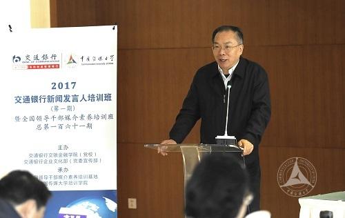 (通讯员 周琛杰)为全面强化和提升交通银行股份有限公司企业领导者的媒介素养,进一步深化推进交通银行全球影响力和品牌传播力,11月7日至10日,由交通银行交银金融学院(党校)、交通银行企业文化部(党委宣传部)主办,我校全国领导干部媒介素养培训基地承办的“2017交通银行新闻发言人培训班(第一期)”在传媒大学举办,37名交行各省直分行、部分海外分行、子公司以及总行部门负责人汇聚一堂,参加此次培训。