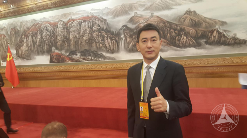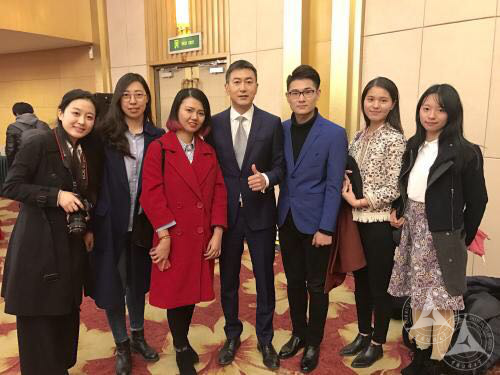 鲁健与我校2016级国新硕士班6名同学在2017年两会现场