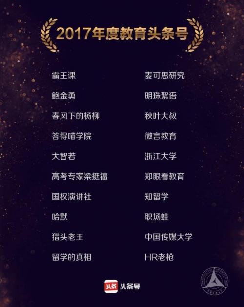 (新闻中心记者 宋佳音)日前,今日头条发布了2017年度头条号榜单。中国传媒大学官方头条号入选“2017年度教育头条号”榜单,一同入选的还有教育部微言教育头条号和浙江大学官方头条号等共计20家。
